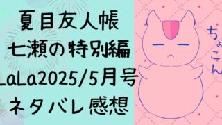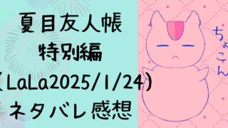 夏目友人帳【その匣とどめるなかれ 其の二】ネタバレ感想記事です。LaLa2026年1月号(11/21発売)に掲載。田沼と一緒に「ハコサママワシ」の村へ行くシリーズ2話目。今回ついに「ハコサママワシ」の儀式!ネタバレ注意です。