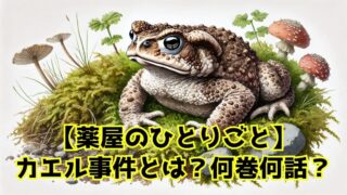 この記事では薬屋のひとりごとにおける衝撃的なトラブル「カエル事件」について解説していきます。そもそもどんな話なのか?漫画二種類(ガンガン・小学館版)・小説二種類(書籍・なろう)の何巻何話にあたるのか?各書籍の違いは?ネタバレ部分のみ折りたたんでお届けします。